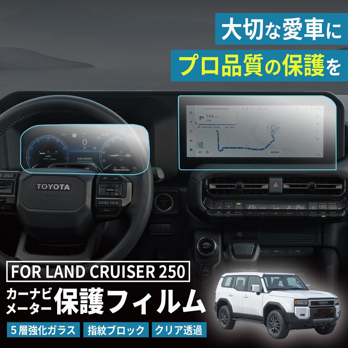 新型ランドクルーザー250系専用設計の12.3インチカーナビ保護フィルム & メーター保護フィルムです。